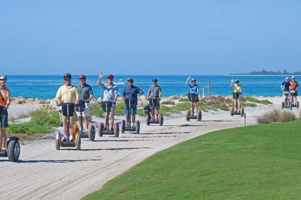 Depuis votre hôtel dans le sud de Fuerteventura nous nous déplacerons à bord de notre véhicule pour rejoindre la piste cyclable qui commence dans la zone de Las Gaviotas-Piedras Caídas. Une fois arrivés nous mettrons nos casques et, après une brève instruction sur le pilotage sécuritaire des véhicules, nous entreprendrons la balade en segway de la côte sud de l'île.