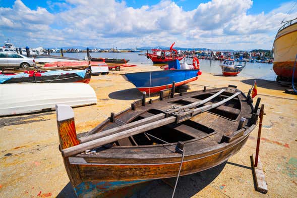 Puis, vous vous dirigerez vers le quartier marin de Peralto, où vous verrez la structure particulière de ses rues qui descendent jusqu'au port. En suivant ce chemin, vous arriverez à la plage Confín, où vous découvrirez l'activité des pêcheurs de fruits de mer de O Grove et observerez le pont qui mène jusqu'à l'île La Toja.