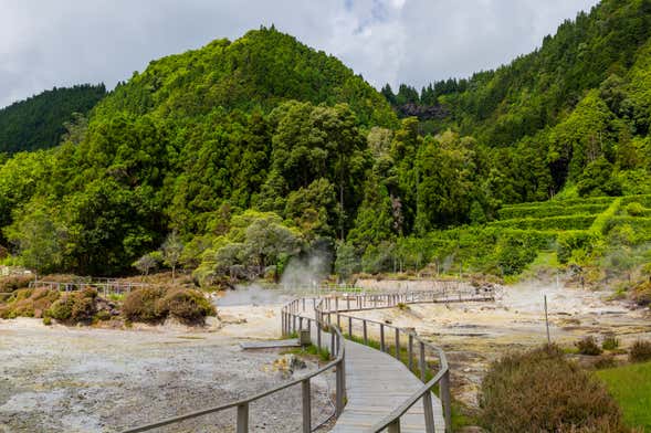 Savez-vous ce qu'est une fumerolle volcanique ? Nous le découvrirons sur la route ! C'est parti pour la visite de Furnas, une petite ville située à l'intérieur du cratère d'un volcan. Une fois sur place, nous admirerons ses bassins d'eau bouillonnante et les surprises naturelles que cet endroit nous réserve.