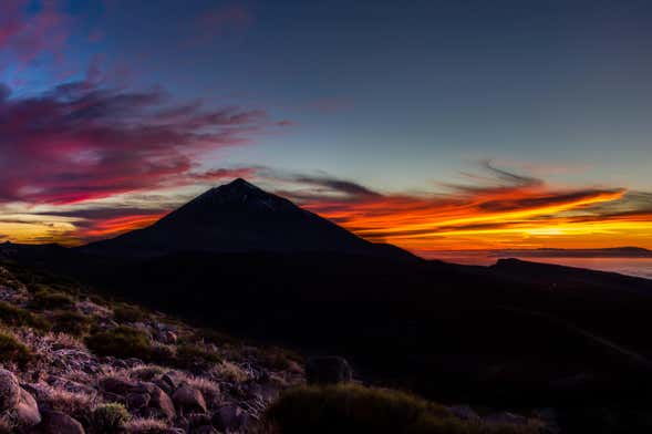 Pendant la visite, vous profiterez également du coucher de soleil sur le mont Teide. Le ciel sera teinté de couleurs rose et orange lorsque le soleil se couchera à l'horizon à côté de la silhouette du volcan. Un vrai spectacle !