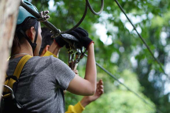 Une fois dans ce parc d'aventure, vous enfilerez des casques et tout l'équipement nécessaire pour réaliser la première activité de la journée : une randonnée de deux kilomètres pour découvrir la flore indigène.