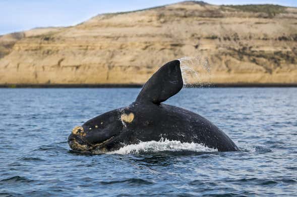 Nous viendrons vous chercher à votre hôtel de Puerto Madryn aux alentours de 08h00 pour vous amener jusqu'à la zone naturelle protégée d'El Doradillo, située à 30 minutes de là. Depuis la côte, vous verrez comment nagent les majestueuses baleines franches australes, à une distance privilégiée de 25 m seulement.