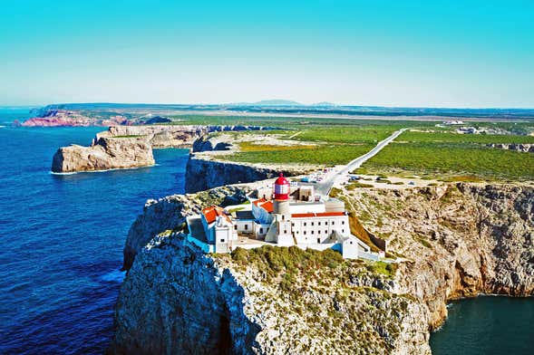 Vous visiterez la charmante ville de Sagres, le point le plus occidental de toute l'Europe. Vous continuerez vers le célèbre Cap Saint-Vincent, où vous admirerez un paysage incomparable de l'Atlantique. Ensuite, vous ferez une halte sur une falaise d'une hauteur de 140 mètres. Vous profiterez de vues imprenables !