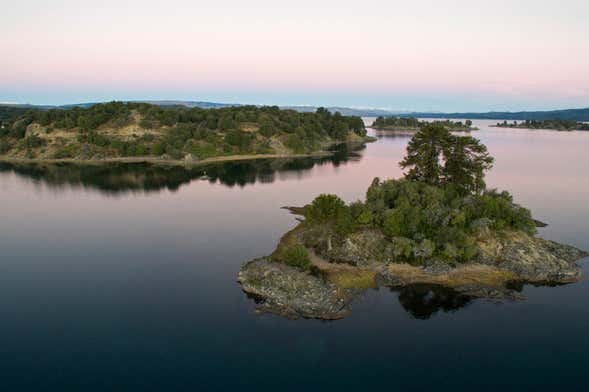 Une fois descendus du volcan, sur le chemin de la Villa Pehuenia, vous passerez par La Angostura, un canal étroit qui relie les lacs Aluminé et Moquehue.