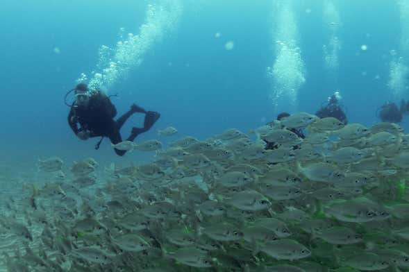 Vous commencerez à dégonfler votre gilet pour plonger et, à une faible profondeur, le moniteur vous enseignera quelques techniques simples pour que vous puissiez commencer à manipuler le matériel avec facilité. En quelques minutes, vous vous déplacerez comme un poisson dans l'eau !
