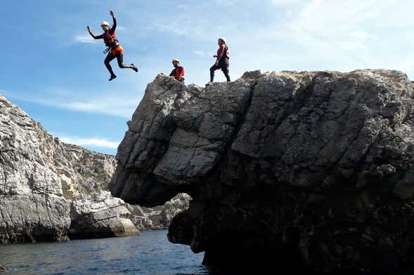 Avec cette activité de coasteering au parc naturel d'Arrábida, faites le plein de sensations fortes en sautant, en nageant et en descendant en tyrolienne sur la côte.