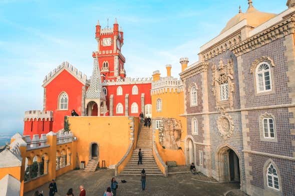 Une fois au sommet de la colline, le chemin vous mènera directement à l'entrée du palais Pena. Vous pourrez accéder à son intérieur, tout aussi surprenant que l'extérieur, et vous promener librement dans ses cours et ses tours, composées de tuiles et de stucs rouges, jaunes et bleus. Un labyrinthe de couleurs !