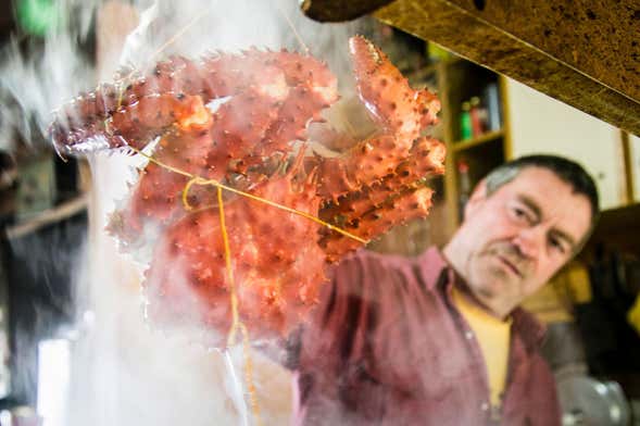 Une petite faim ? Vous vous rendrez dans un restaurant pour vous régaler en dégustant l'un des trésors les plus prisés de la région : le crabe royal. Au moment de la réservation, vous pourrez choisir entre un déjeuner composé d'un demi-crabe ou d'un crabe entier, accompagné dans les deux cas de boissons et d'un dessert.