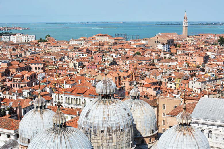 À votre arrivée, vous pourrez y accéder sans faire la queue et monterez rapidement en ascenseur jusqu'au sommet, où vous profiterez d'une vue imprenable sur les lieux les plus emblématiques de Venise ! Les coupoles de la basilique, la place Saint-Marc et même la lagune. Une véritable occasion de prendre des photos mémorables !