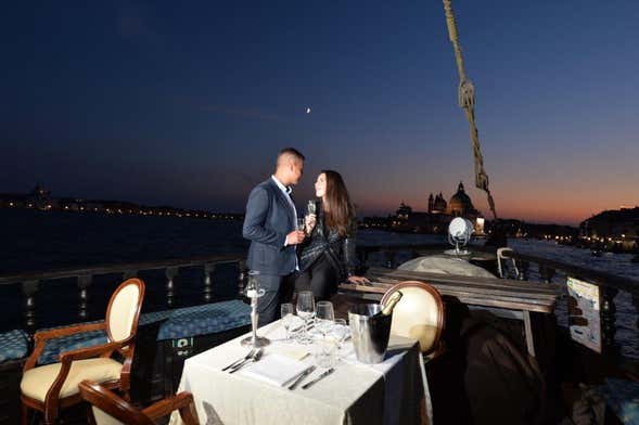 Pendant le dîner, des tables très élégantes seront servies à la lumière des bougies. Vous pourrez déguster une grande variété de plats vénitiens, cuisinés par le chef à bord. Le décor de la croisière seront les îles Le Vignole, Sant’Erasmo, San Francesco del Deserto, Burano et ses maisons colorées aux couleurs vives, Torcello, Mazzorbo et Murano, connue pour son verre.