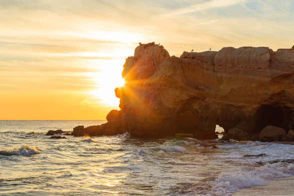 Pendant la traversée, vous naviguerez le long de différents points de la côte sud du Portugal pour observer les rayons du coucher de soleil teinté d'orange et d'écarlate les arches naturelles et les grottes marines de la région. Vous naviguerez autour des grottes de Galé tout en buvant un verre de vin mousseux et en appréciant le paysage unique sous la lumière du coucher de soleil.