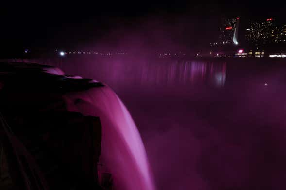 Tra i mesi di maggio e ottobre, a seconda delle condizioni meteorologiche e in giorni specifici, alle Cascate del Niagara si tiene uno spettacolo pirotecnico. Se prenotate il tour in questo periodo o se il giorno della vostra attività è il giorno dello spettacolo pirotecnico, alla fine del tour ci fermeremo su una piattaforma panoramica per ammirare lo spettacolo di fuochi d'artificio che illumina le cascate al tramonto. Rimarrete senza parole!