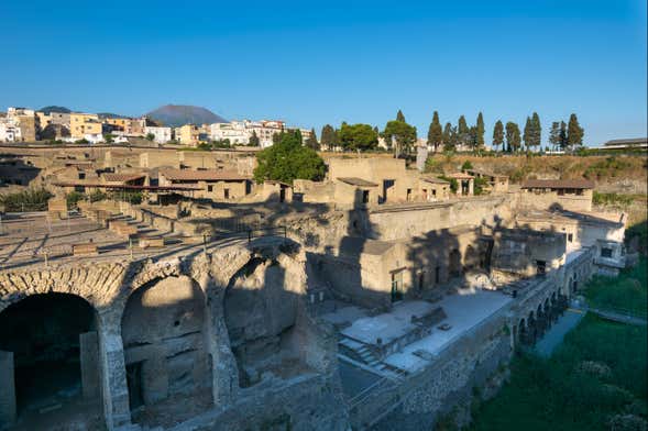 Passeremo a prendervi in hotel o al punto di incontro all'ora indicata e, una volta riuniti, partiremo alla volta del sito archeologico di Ercolano, una delle tre città romane sepolte dalla terribile eruzione del Vesuvio del 79 d.C. Siete pronti? E allora andiamo!