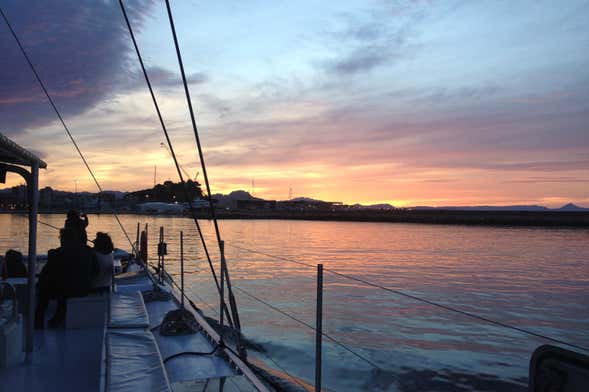 Prenderemo il largo e inizieremo a navigare lungo la costa mediterranea mentre il cielo comincerà a tingersi di caldi toni aranciati. Se avremo la fortuna di salpare in una giornata limpida, potremo scorgere persino l'isola di Ibiza all'orizzonte!
