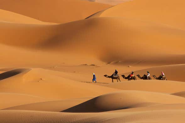 Verremo a prendervi in hotel all'ora indicata e ci metteremo in viaggio verso il deserto di Dubai. In questo tranquillo mare di sabbia ci aspettano i simpatici cammelli che ci porteranno sulle dune mentre il sole tramonta. Faremo un piacevole giro in cammello di 40 minuti fermandoci a metà percorso per ammirare un momento magico: il crepuscolo nel deserto.