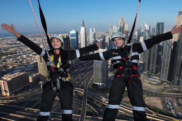L'esperienza dell'Edge Walk vi lascerà a bocca aperta. Vi aiuteremo a indossare le imbracature e potrete salire sul cornicione esterno dell'edificio Sky Views Dubai. Per circa 20 minuti, potrete camminare lungo questa passerella aerea e godervi l'incredibile vista del Burj Khalifa e dei grattacieli circostanti: una vera sfida alla gravità!