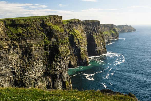 Il tour proseguirà verso la nostra meta principale: le Scogliere di Moher. Queste impressionanti e suggestive scogliere a picco sul mare, si estendono per 8 chilometri raggiungendo 210 metri d'altezza. Qui, potremo osservare varie specie di uccelli, come i cormorani e le fratercule; inoltre, avremo due ore di tempo libero per rifocillarci o continuare a esplorare la zona. E se volete pranzare contemplando le migliori viste panoramiche, vi consigliamo di portare un pranzo al sacco, per mangiare a contatto con la natura.
