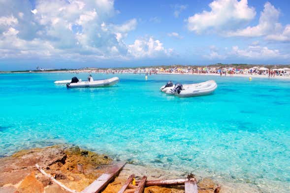 Una volta riuniti, per tre ore navigheremo a bordo di un gommone semirigido di otto metri di lunghezza e 250 CV di potenza. Questa imbarcazione è dotata anche di tenda da sole e frigo. Il mezzo di trasporto ideale per visitare gli angoli più belli di Formentera!