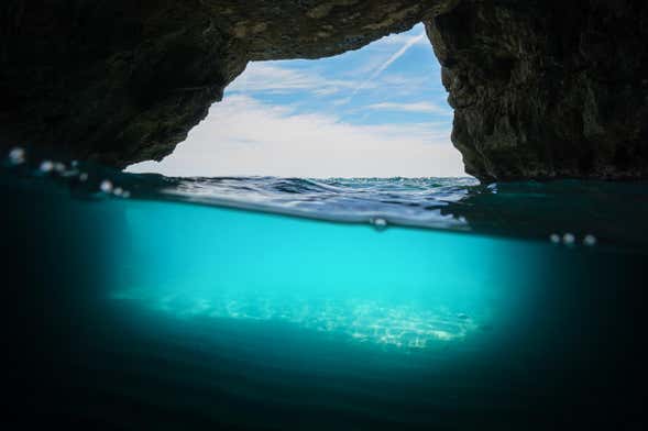 Esplorate la costa mediterranea a bordo di una barca e partecipate a un'esperienza ella grotta del Llop Marí​. Potrete fare snorkeling nelle acque cristalline della zona!