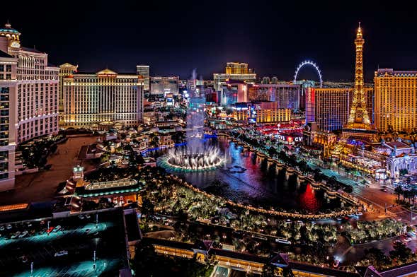 La torre rimane aperta fino a mezzanotte, quindi dal suo belvedere potrete ammirare lo straordinario panorama notturno di Las Vegas. Il 46° piano offre anche una magnifica vista sulle fontane del Bellagio e sugli hotel-casinò di The Strip, il viale principale della città, che si distingue per la sua illuminazione a dir poco sorprendente.