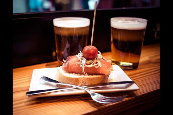 Lungo il percorso, faremo tre soste e assaggeremo una selezione di questi piccoli bocconcini, degustando vari prodotti tipici come i peperoni Padrón, i funghi tradizionali, il prosciutto e le salsicce iberiche abbinate al vino, le carrileras e il purè di patate al vino...