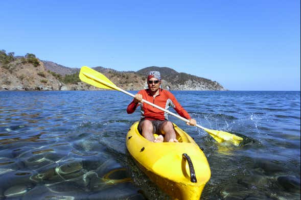 Dopo una breve introduzione, impugneremo i remi del kayak e seguiremo la guida, mentre osserviamo scogliere e paesaggi dalla vegetazione tipicamente mediterranea. Siete pronti all'avventura?