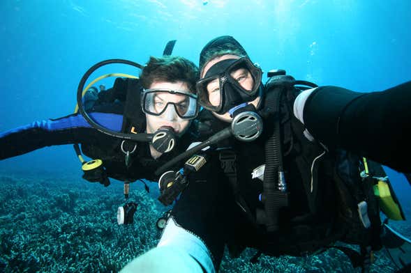 Indosseremo le mute e il resto del materiale e faremo un'immersione di un'ora che ci permetterà di mettere in pratica tutto ciò che abbiamo imparato. Nuoteremo nelle acque del Pacifico accompagnati in ogni momento dall'istruttore, in modo che l'esperienza si svolga in totale sicurezza.