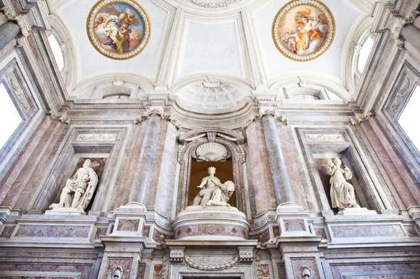 Durante il percorso potrete visitare stanze come la sala del trono, il boudoir di María Carolina, lo studio di Fernando IV o la biblioteca. Rimarrete stupiti dalla bellissima decorazione degli appartamenti reali e dalle numerose opere d'arte che decorano tutte le sale. Naturalmente, avrete accesso anche gli ampi giardini.