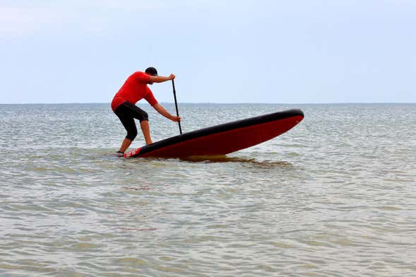 Prima di iniziare, vi spiegheremo brevemente come utilizzare l'attrezzatura da paddle surf. Il segreto è l'equilibrio! Assimilati i concetti base, saliremo sulle tavole e cominceremo a remare.