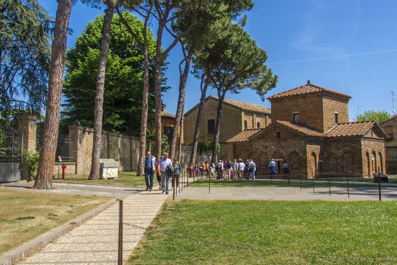 A questo punto, sarà la volta del Mausoleo di Galla Placidia. Dopo aver ammirato la sua facciata dall'esterno, vi accederemo per ammirarne gli splendidi mosaici, caratterizzati dall'uso di un blu profondo. Le figure angeliche che rappresentano sembrano quasi prendere vita, non trovate?