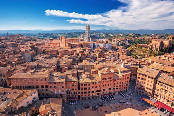 Se volete realizzare una visita più completa, questo itinerario a piedi della durata di due ore è l'opzione più adatta. Passeggerete per il centro storico di Siena per conoscere Piazza del Campo, la Fonte Gaia, il Santuario di Santa Caterina e alcuni palazzi rilevanti, come il Palazzo Tolomei o Salimbeni.