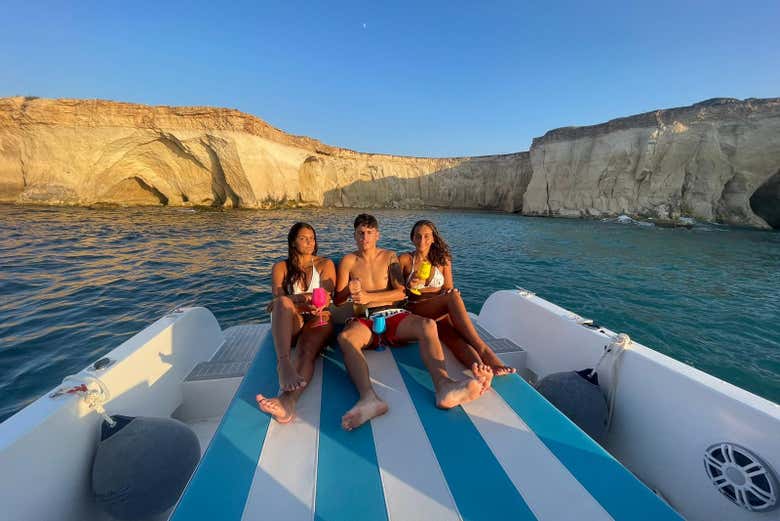 Mentre verrà servito l’aperitivo, faremo una seconda sosta per ammirare il litorale dell’isola di Ortigia, bagnato dagli ultimi raggi di sole, prima di invertire la rotta per tornare al molo di partenza.