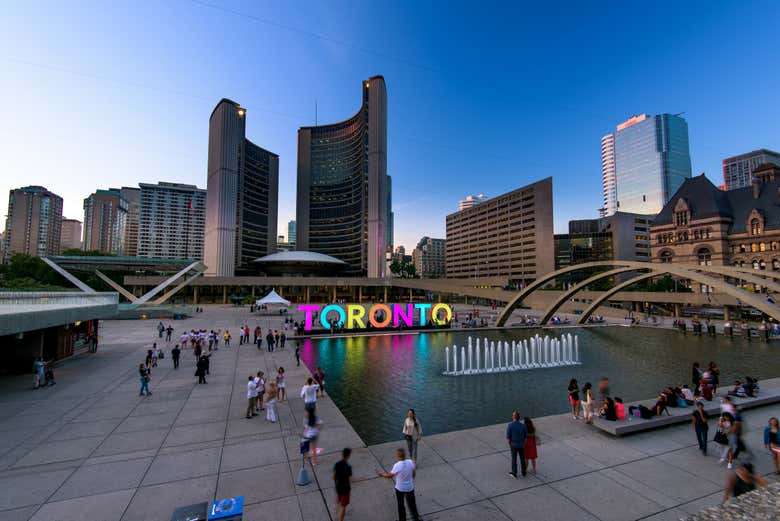 Concluderemo il giro in barca tornando al punto di partenza e, una volta sulla terraferma, daremo il via al nostro tour serale di Toronto. Nel corso dell'itinerario, che avrà una durata di un'ora e mezza circa, saliremo a bordo di un veicolo che ci condurrà alla scoperta di Nathan Phillips Square y Dundas Square, che ci sorprenderanno per il loro stile architettonico.