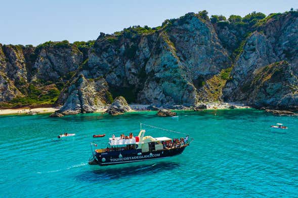 Durante la gita in barca scopriremo le calette di sabbia dorata e acque cristalline di Capo Vaticano, uno dei promontori più famosi della Calabria, grazie ai suoi paesaggi paradisiaci. Sapevate che questa zona è anche conosciuta come Costa degli Dei o Costa Bella? Ve ne innamorerete!