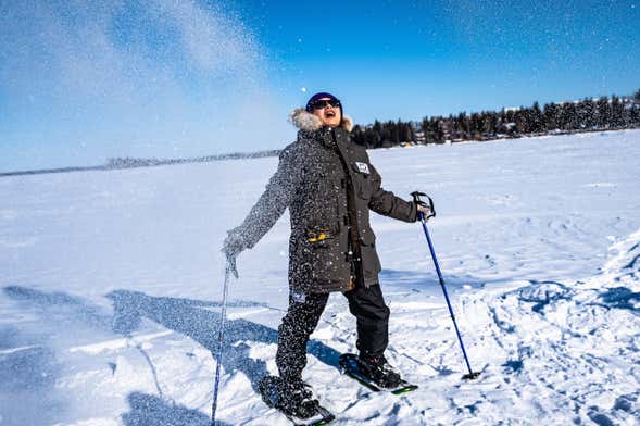 Faremo una passeggiata sulle sponde del lago e, grazie ai bastoni e alle racchette da neve, accederemo con facilità a terreni che, altrimenti, risulterebbero impraticabili. Mentre ammiriamo i paesaggi ghiacciati del Great Slave Lake, avremo modo di osservare anche qualche esemplare di fauna locale, fra cui volpi e pernici.
