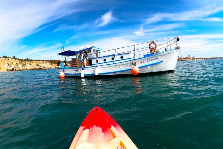 Após a travessia pela costa do Algarve de aproximadamente 50 minutos, chegaremos à zona da Praia João de Arens e da Praia do Va, duas das mais belas praias do sul de Portugal. Ao chegar a essas praias arenosas, desembarcaremos no Frontino para embarcar em um tour de caiaque ao redor dessas enseadas.