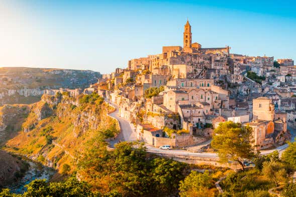Depois da sua visita por conta própria por Alberobello, voltaremos a nos reunir no centro do povoado para ir rumo à Basilicata. Às 13:30 horas, chegaremos a Matera, uma cidade charmosa e com muito encanto que em 2019 foi nomeada Capital Europeia da Cultura.