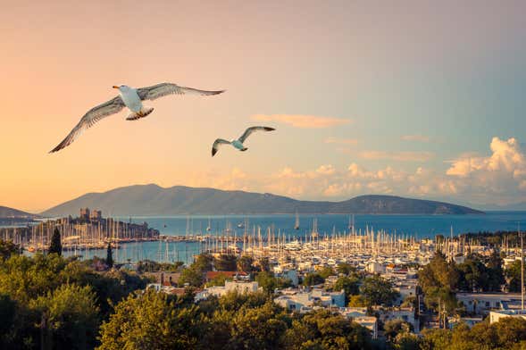 Deixaremos a cidade para trás enquanto contemplamos as casinhas brancas com primaveras e jasmins e a silhueta do castelo de São Pedro de Halicarnasso, uma fortaleza do século XV construída pelos cavaleiros Hospitalários. Enquanto navegamos, escutaremos alguns comentários curiosos que vão lhe surpreender. Sabia que Heródoto nasceu na cidade de Bodrum?