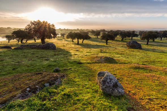 Saindo do centro de Cáceres, partiremos em direção aos povoados de Casar de Cáceres e Garrovillas. Percorreremos as grandes extensões de caminhos e prados da Estremadura de 4x4, onde habitam espécies protegidas e se desenvolvem atividades pecuárias tradicionais.