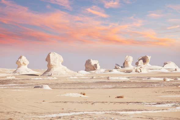 A partir desse lugar, iniciaremos um percurso de aproximadamente 160 quilômetros pelo Deserto Branco. Lá, nos deteremos na Crystal Mountain, composta de pequenos fragmentos de quartzo que brilham à luz do sol, no vale de Agabat e em El Sharkia. Momento da foto!