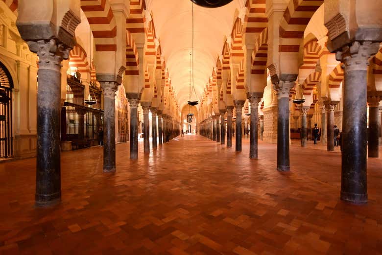 Assim que entrarmos, encontraremos o Pátio de los Naranjos, um lugar que lhe conquistará pelo aroma das flores. Em seguida, entraremos na Mesquita-Catedral para caminhar e admirar os elementos muçulmanos e católicos. Caminharemos pelo famoso Bosque de Columnas e admiraremos os detalhes das pilastras decoradas com arcos em forma de ferradura e arcos semicirculares.