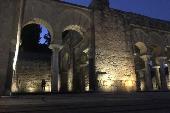 Durante o tour, teremos a oportunidade de caminhar sob o céu estrelado por esta antiga cidade admirando seus edifícios iluminados. Veremos as ruínas de torres, palácios e salões reais que outrora cumpriram funções administrativas e residenciais do Califado de Córdoba.