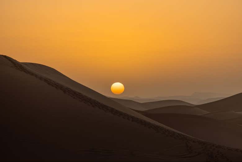 Mas o melhor ainda está por vir! Dependendo do horário que você escolher para fazer a excursão, você começará a ver as cores do nascer ou do pôr do sol no horizonte do deserto. Laranjas, dourados, rosados? A paleta de cores será incrível! Aproveite o momento para tirar uma foto. No entanto, garantimos que a melhor recordação será a que você guardará na sua memória.