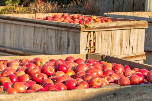 Visitaremos a plantação de maçãs, a zona de trituração e prensado, de engarrafado e as adegas onde o produto é armazenado.