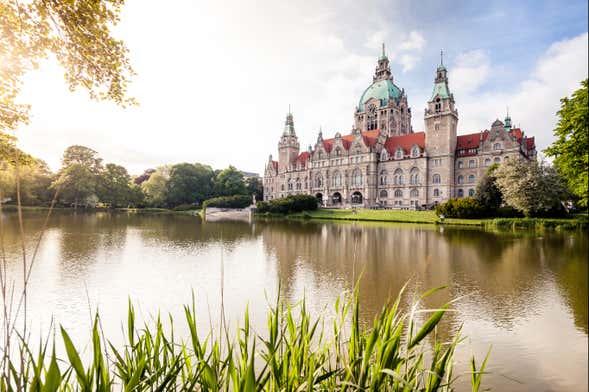 Na hora que você escolher, nos encontraremos em um dos lugares mais emblemáticos de Hannover, a Nova Prefeitura, um edifício que certamente o surpreenderá.