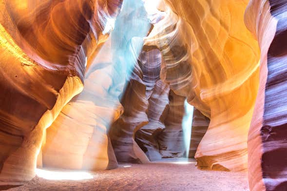 Nossa primeira parada será a reserva dos índios navajo, de onde iremos de 4x4 até a entrada do Antelope Canyon. Dependendo das condições meteorológicas e da disponibilidade da temporada, visitaremos o cânion Upper, Lower ou X. Seja qual for o lugar visitado, os três oferecem espetaculares paisagens esculpidas ao longo de milhões anos e dignas de cartão-postal! Durante uma hora e meia, caminharemos pelos desfiladeiros e desfrutaremos da mágica desse lugar.