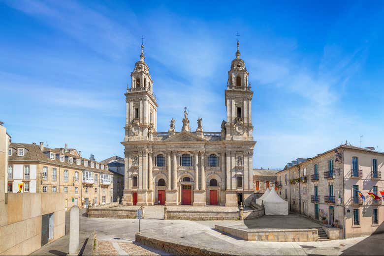 Iniciaremos esta visita guiada à Catedral de Lugo da sua fachada principal na Plaza de Pío XII.