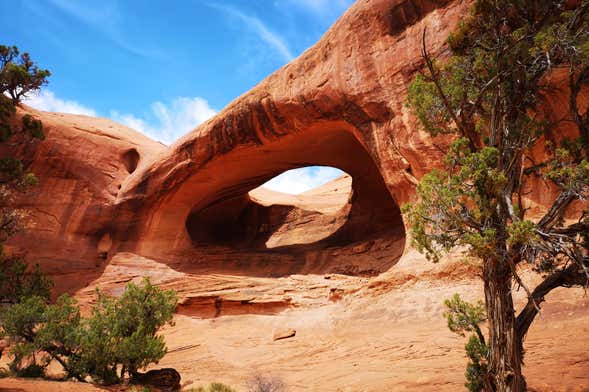 Continuaremos nossa excursão visitando os arcos naturais do Mystery Valley. Algumas dessas formações geológicas apresentam silhuetas curiosas que certamente lhe surpreenderão. Você poderá aproveitar a oportunidade para tirar algumas fotos únicas!