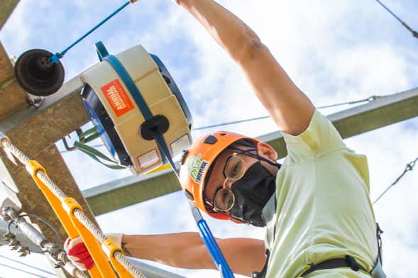 Nossa aventura no Torro Roller começará com uma subida a uma torre de 18 metros de altura, de onde desfrutaremos de impressionantes vistas da vegetação de Orocovis. Nesse ponto colocaremos o equipamento de segurança e começaremos o circuito.