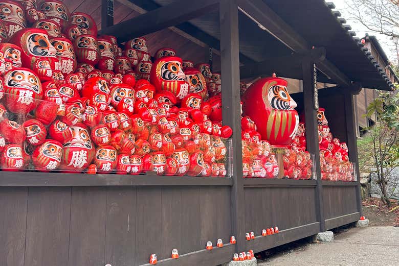 Ao chegar na Estação Minoo Kayano, pegaremos um ônibus que nos levará a Katsuoji em apenas 20 minutos. Esse lindo templo budista é conhecido por seus amuletos daruma, que, segundo a tradição japonesa, são talismãs de boa sorte. O que você acha dessas figuras tão particulares?